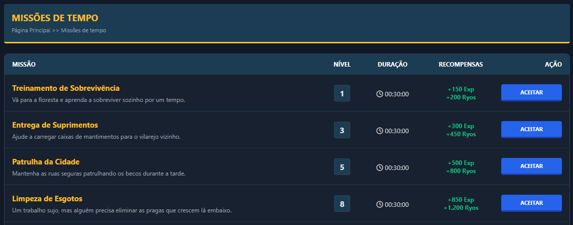 - agora não é possível acessar certas páginas do jogo estando em missão de tempo.