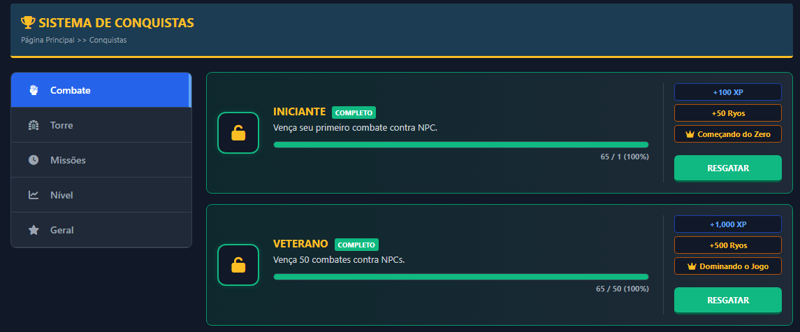 - após acessar pela primeira vez a página de conquistas ficará um simbolo marcador que avisará você enquanto tiver conquistar para resgatar.