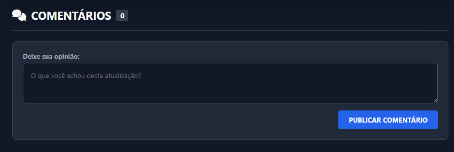 - agora é possível adicionar seu comentário e deixar seu feedback sobre o que achou das novas atualizações.